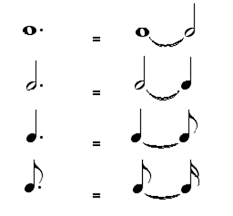 Es una figura de las notas musicales que le suma la mitad a la misma nota ejemplo un redonda vale 4 tiempo y si se le pone un puntillo vales 6 la negra vale 2 y con el puntillo vale 3